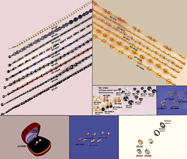 係以鐵氧體磁珠經拋光、切角或染色等搭配半寶石等以鋼線組穿製成。仿珍珠之染色技巧運用於磁珠上,其顏色效果多變,可媲美南洋珠。以鑽石切割加工之切角珠,其多邊形折射效果益添項鍊之光采及亮麗。另以磁珠與銅鍊等手工組成之項鍊,經鍍厚金或白金等而成,其手工細緻,款式優雅,宛如真金首飾。