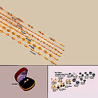 係以銅材經多次加工、拋光、鍍金、嵌入稀土類超強力磁石及鑲上半寶石而成。其耳夾式之設計,除便利佩戴外,於耳廓上之不同穴位點,可達不同之功效。鍍厚金之規格品係2 micron。另一類耳環是鐵氧體磁石經拋光、切角或染色係利用磁石相吸之原理,佩戴於耳廓上,輕巧、便利,久戴不疼痛,輕鬆自在。不同穴位之佩戴,可減低食慾,達減肥之功效,亦可減輕菸癮等。